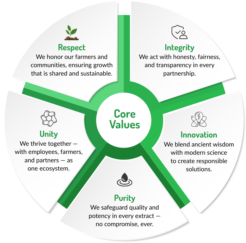 At Botanix Industries, crafting world-class herbal extracts is not just a business — it’s our responsibility to people, communities, and the planet. Rooted in our vision to be a trusted global leader, and our mission to empower farmers while delivering sustainable, science-led solutions,